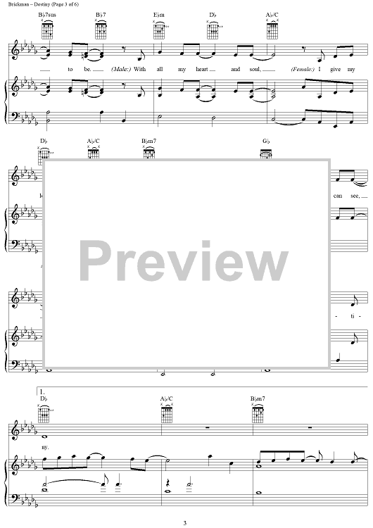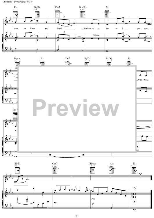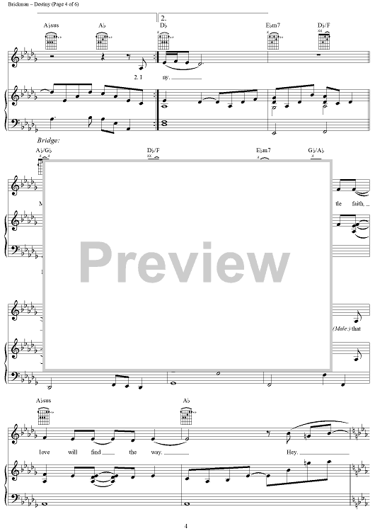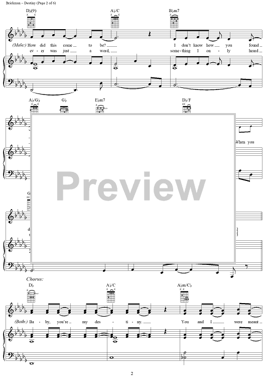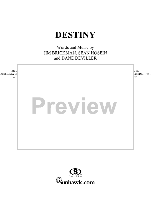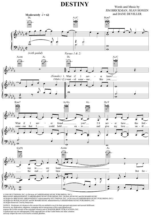 Digital Sheet Music for Destiny by Jim Brickman, Dane Deviller, Sean Hosein scored for Piano/Vocal/Chords; id:274982