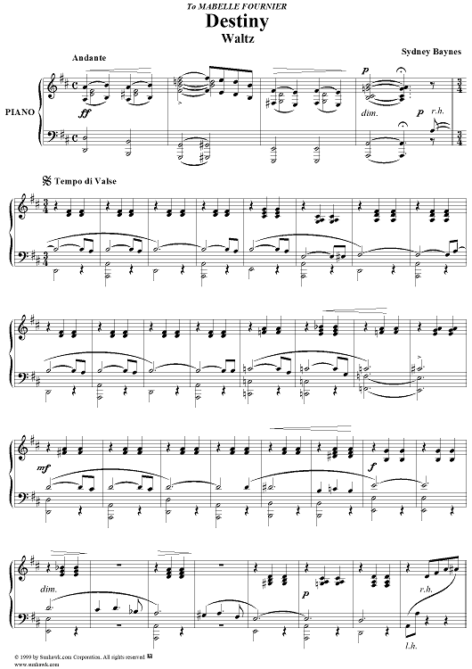 Digital Sheet Music for Destiny by Sydney Baynes scored for Piano Solo; id:276581