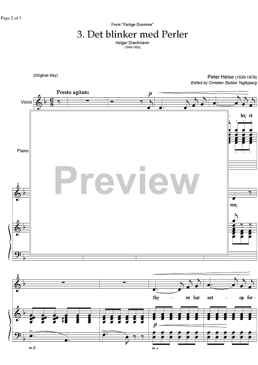 Digital Sheet Music for Det blinker med Perler by , Peter Heise scored for Mezzo-soprano or Baritone/Piano; id:343760