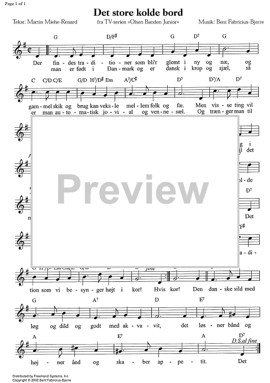 Digital Sheet Music for Det store kolde bord - C Instruments by Bent Fabric scored for Lead Sheet; id:338633