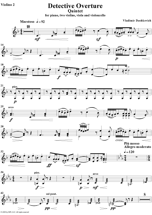Digital Sheet Music for Detective Overture - Violin 2 by , Vladimir Dashkevich scored for Piano Quintet; id:403161