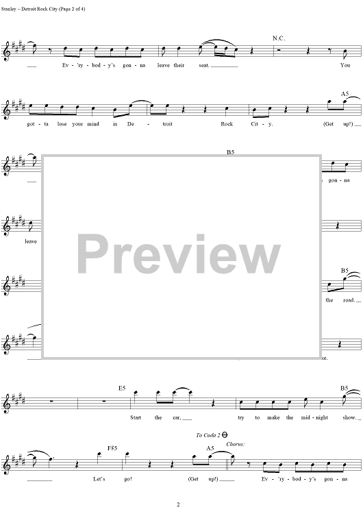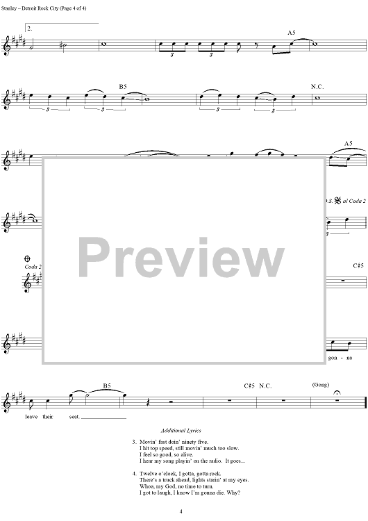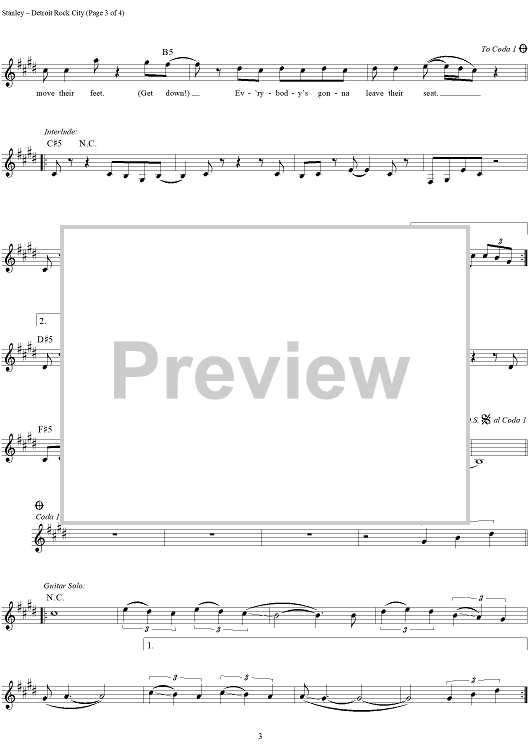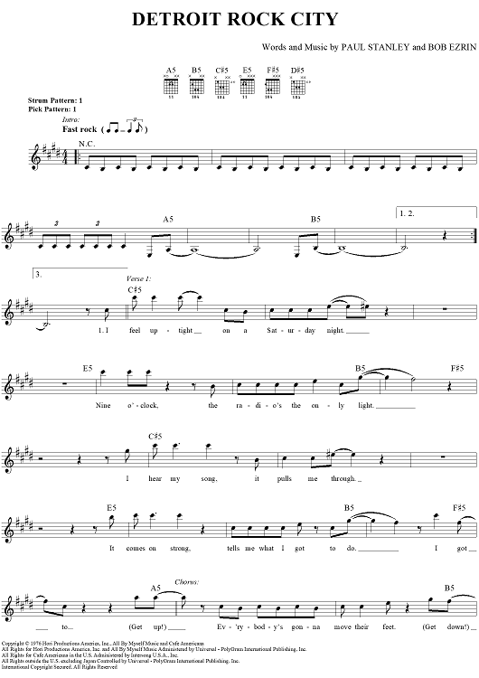 Digital Sheet Music for Detroit Rock City by Paul Stanley, Bob Ezrin, KISS scored for Easy Guitar; id:370904