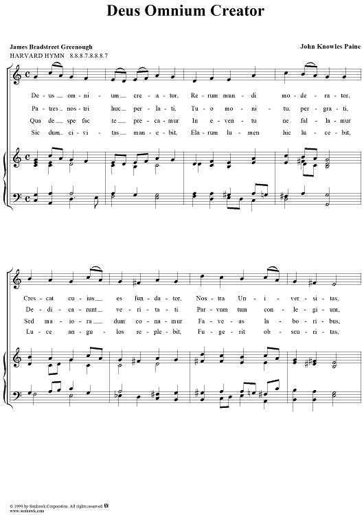 Digital Sheet Music for Deus Omnium Creator by John Knowles Paine, James Bradstreet Greenough scored for Four-part Mixed Chorus; id:118148