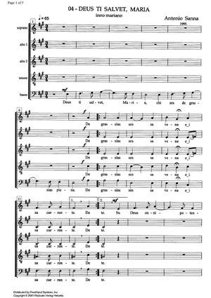 Digital Sheet Music for Deus ti salvet Maria - Score by , Antonio Sanna scored for SAATB Choir; id:353763