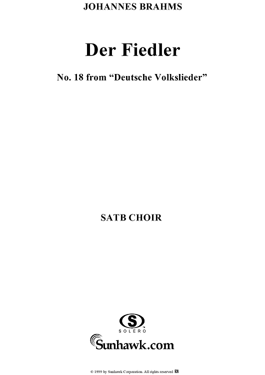 Digital Sheet Music for Deutsche Volkslieder, No. 18, Der Fiedler by , Johannes Brahms scored for Four-part Mixed Chorus; id:274425