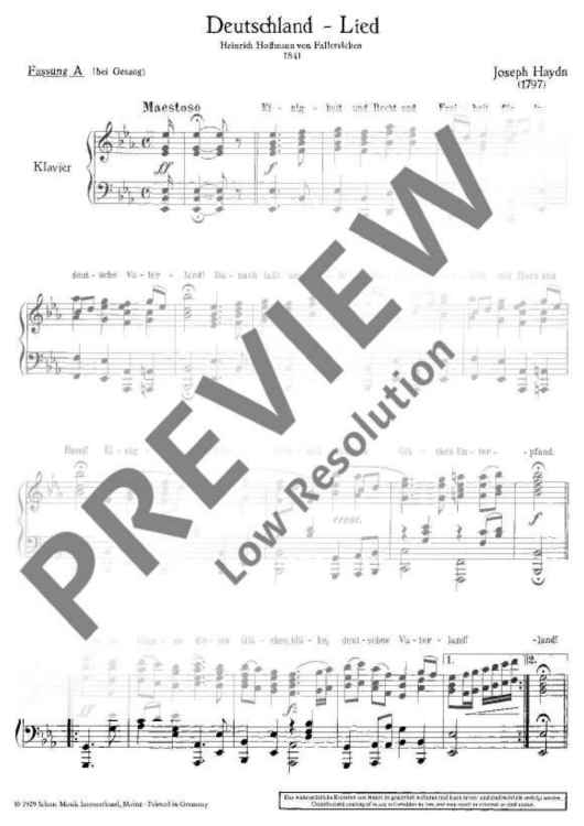 Digital Sheet Music for Deutschland-Lied by Joseph Haydn scored for Piano With Text; 1 Or 2 Violins, Viola And Cello Ad Libitum; id:474887