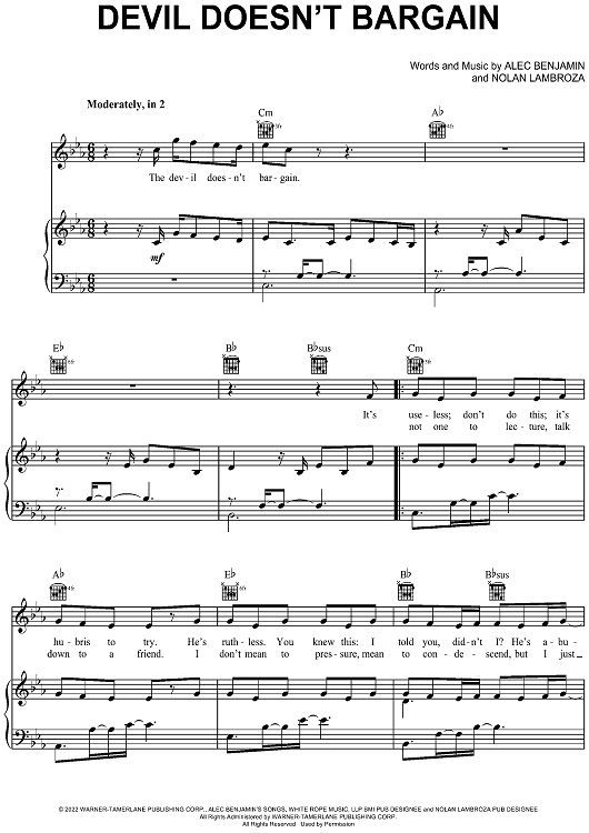 "Devil Doesn't Bargain" Sheet Music by Alec Benjamin