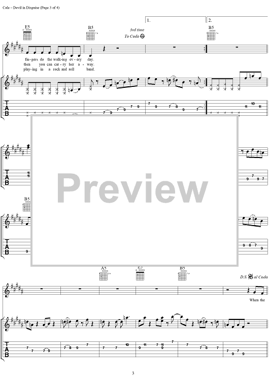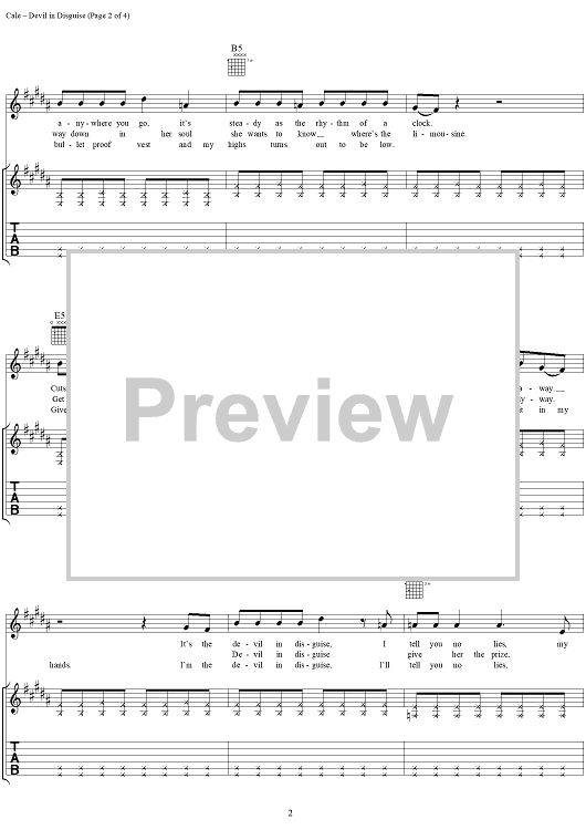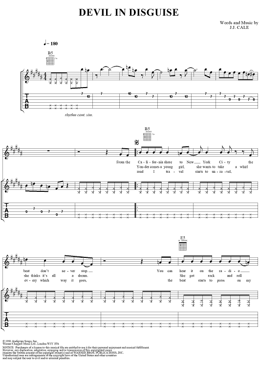 Digital Sheet Music for Devil in Disguise by J. J. Cale scored for Guitar Tab/Vocal; id:273403