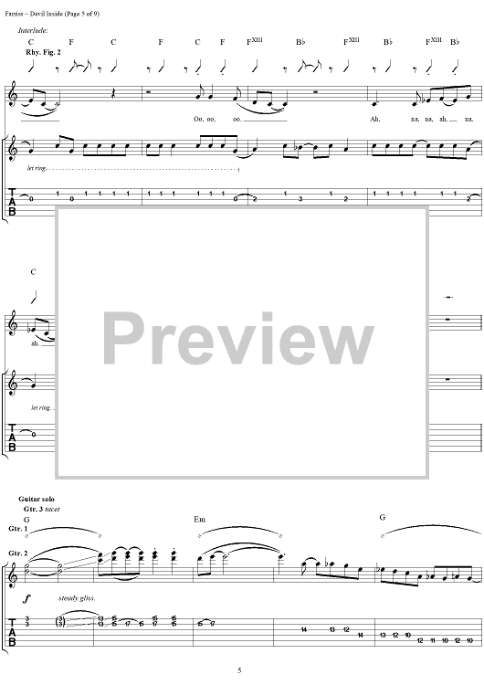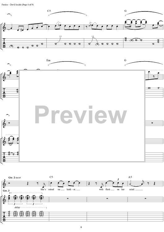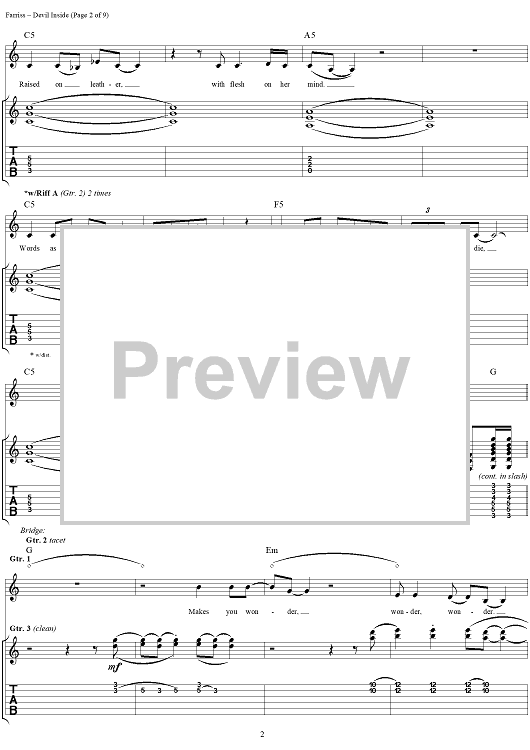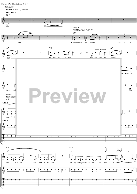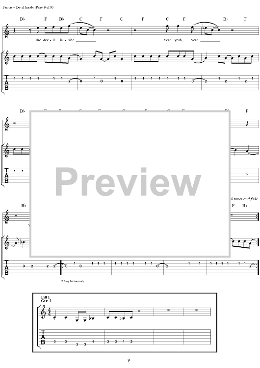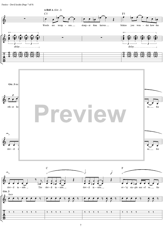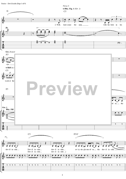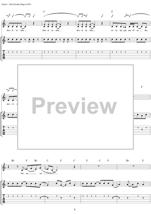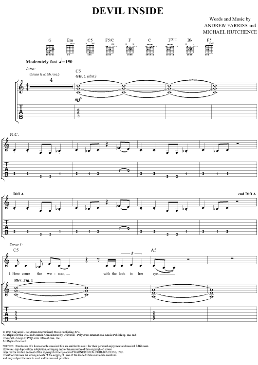 Digital Sheet Music for Devil Inside by INXS, Andrew Farriss, Michael Hutchence scored for Guitar Tab/Vocal; id:287047
