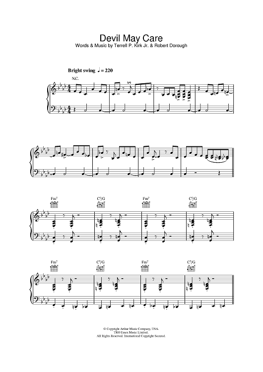 Digital Sheet Music for Devil May Care by Jamie Cullum scored for Piano/Vocal/Chords; id:376824