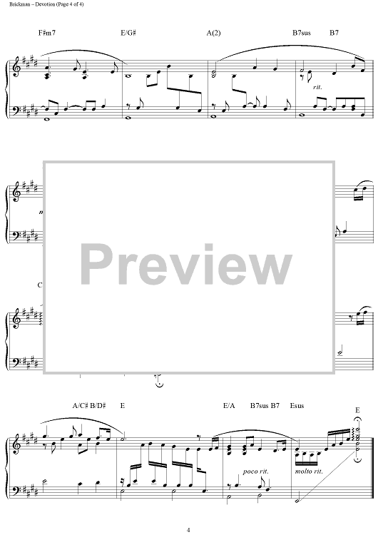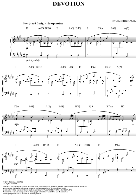 Digital Sheet Music for Devotion by Jim Brickman scored for Piano Solo; id:284506