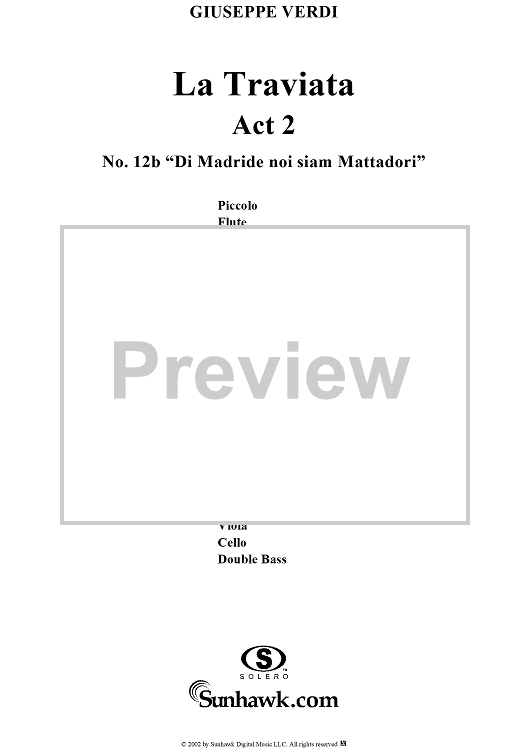 Digital Sheet Music for Di Madride noi siam Mattadori, No. 12b from "La Traviata", Act 2 - Full Score by Giuseppe Verdi scored for Orchestra; id:290818