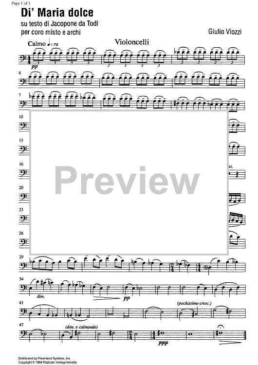 Digital Sheet Music for Di' Maria dolce - Cello by , Giulio Viozzi scored for Choir/String Quintet; id:333916