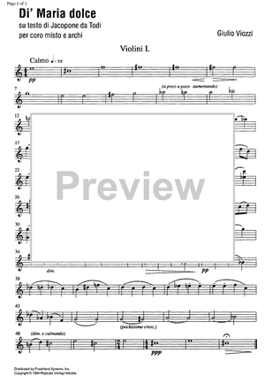 Digital Sheet Music for Di' Maria dolce - Violin 1 by , Giulio Viozzi scored for Choir/String Quintet; id:333913