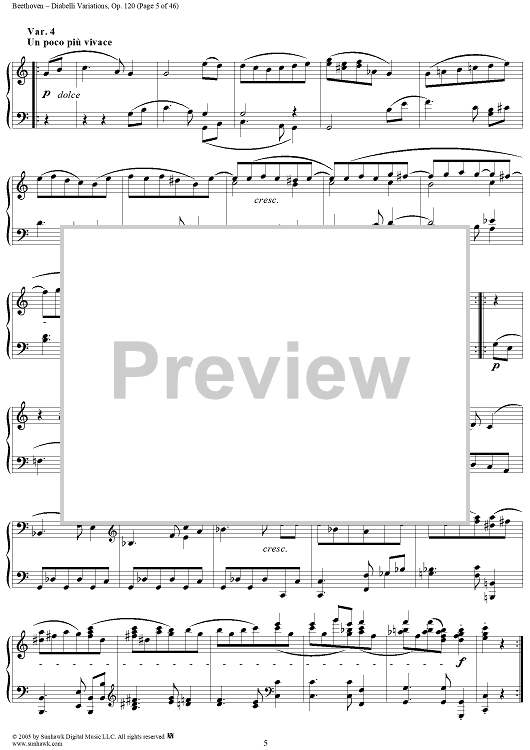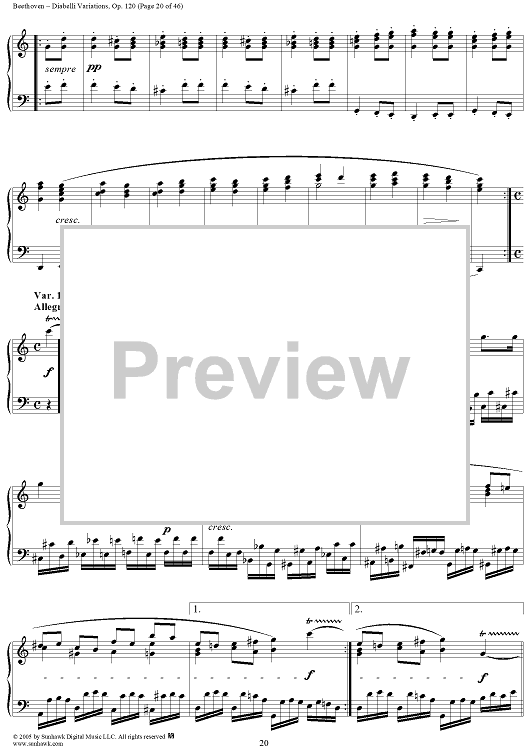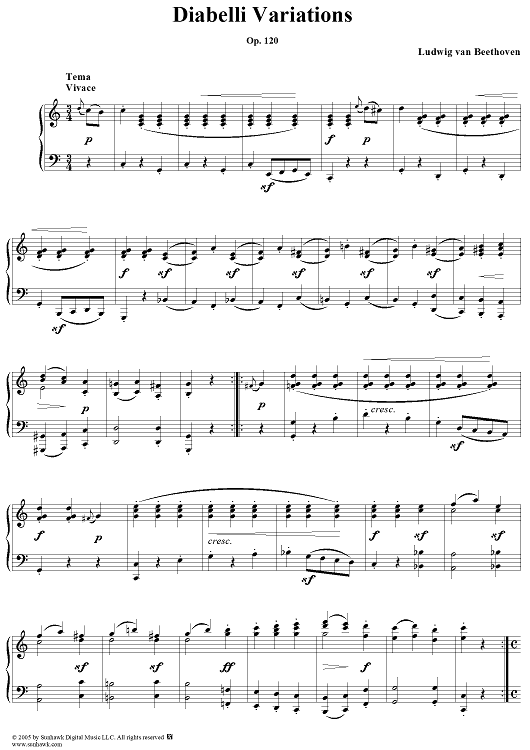 Digital Sheet Music for Diabelli Variations, Op. 120 by Ludwig van Beethoven scored for Piano Solo; id:308322