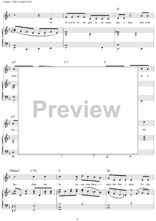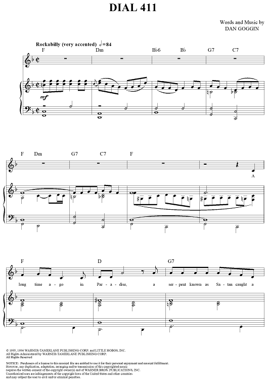 Digital Sheet Music for Dial 411 by Dan Goggin scored for Piano/Vocal/Chords; id:312534