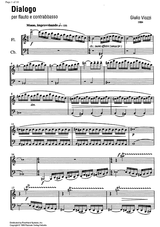 Digital Sheet Music for Dialogo by , Giulio Viozzi scored for Flute/Double Bass; id:334549