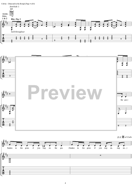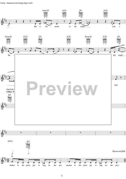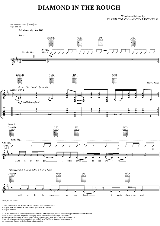 Digital Sheet Music for Diamond in the Rough by Shawn Colvin, John Leventhal scored for Easy Guitar Tab/Vocal; id:235400
