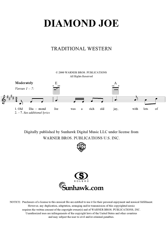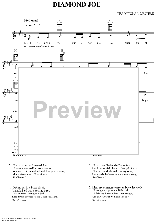 Digital Sheet Music for Diamond Joe by Traditional scored for Lead Sheet; id:292656