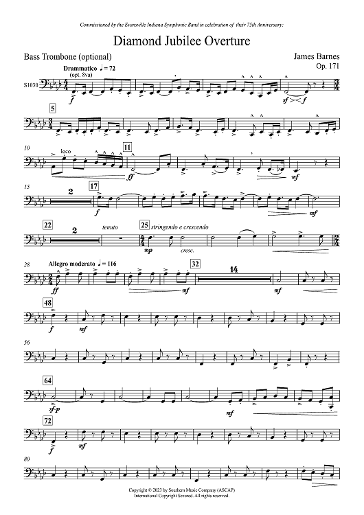 Digital Sheet Music for Diamond Jubilee Overture - Bass Trombone by James Barnes scored for Concert Band; id:502337