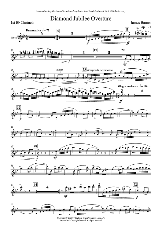 "Diamond Jubilee Overture - Bb Clarinet 1" Sheet Music by James Barnes