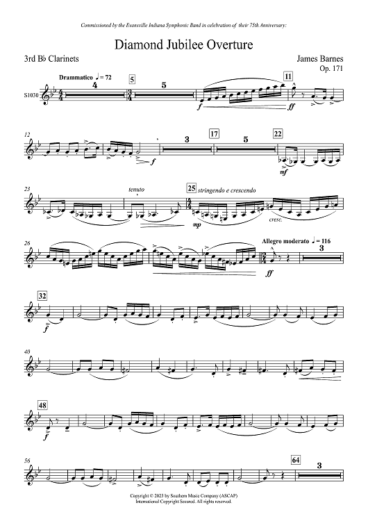 "Diamond Jubilee Overture - Bb Clarinet 3" Sheet Music by James Barnes