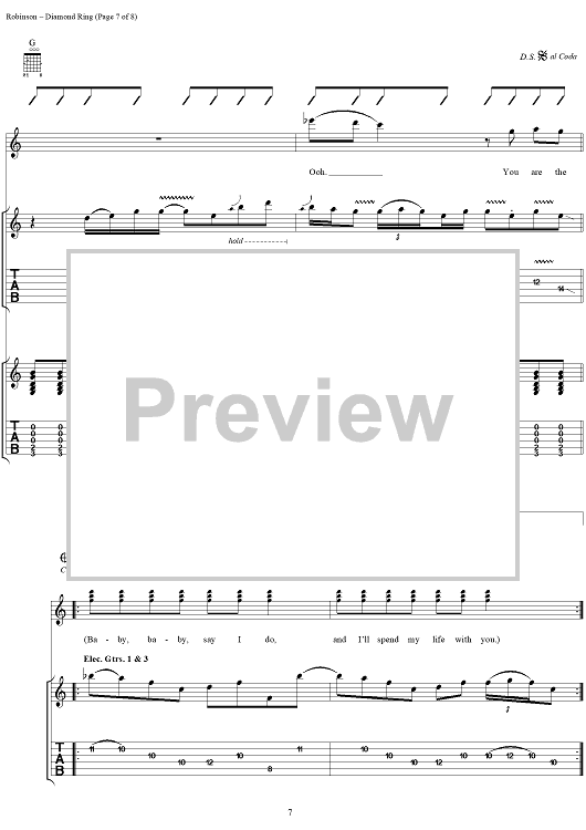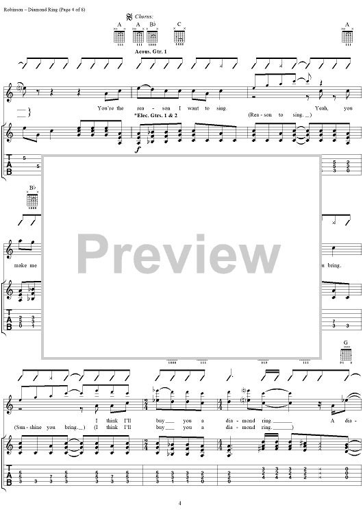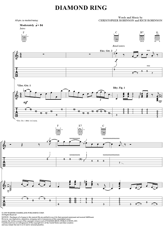 Digital Sheet Music for Diamond Ring by The Black Crowes, Chris Robinson, Rich Robinson scored for Guitar Tab/Vocal; id:234965