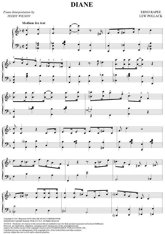 Digital Sheet Music for Diane by Teddy Wilson, Lew Pollack, Erno Rapee scored for Piano Solo; id:315911