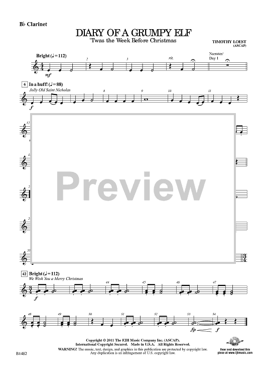 "Diary of a Grumpy Elf - Bb Clarinet" Sheet Music by Timothy Loest