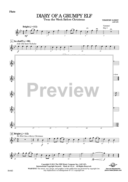 "Diary of a Grumpy Elf - Flute" Sheet Music by Timothy Loest