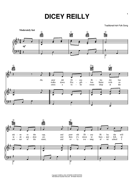 Digital Sheet Music for Dicey Reilly by scored for Piano/Vocal/Chords; id:393909