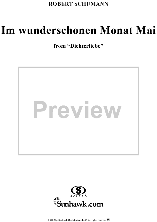 Digital Sheet Music for Dichterliebe (Song Cycle), Op. 48, No. 01: Im wunderschönen Monat Mai - No. 1 from "Dichterliebe" Op. 48 by Robert Schumann, Heinrich Heine scored for Voice/Piano; id:257109