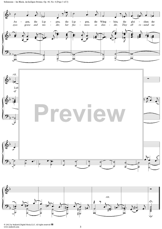 Digital Sheet Music for Dichterliebe (Song Cycle), Op. 48, No. 06: Im Rhein, im heiligen Strome - No. 6 from "Dichterliebe" Op. 48 by Robert Schumann, Heinrich Heine scored for Voice/Piano; id:257117