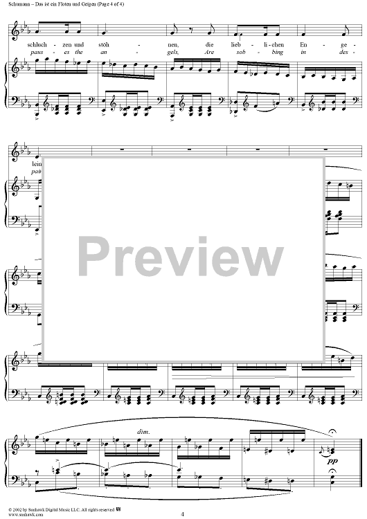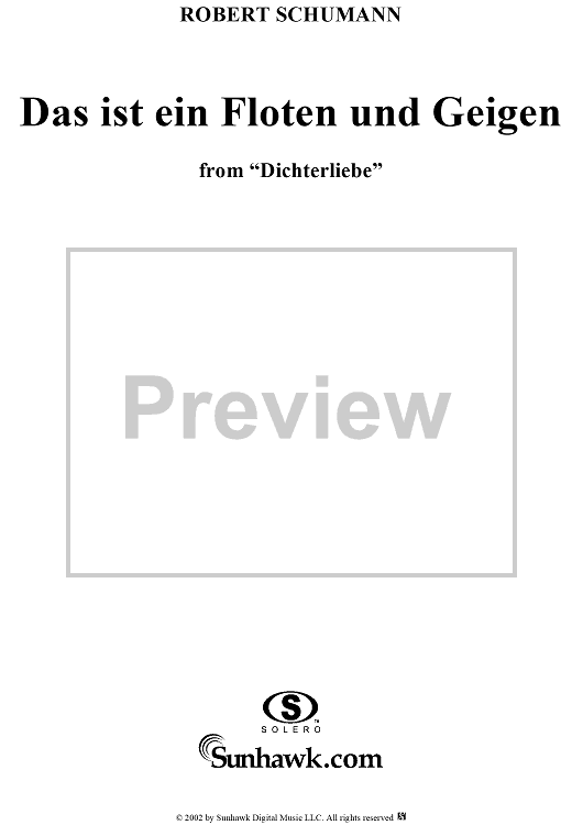 Digital Sheet Music for Dichterliebe (Song Cycle), Op. 48, No. 09: Das ist ein Flöten und Geigen - No. 9 from "Dichterliebe" Op. 48 by Robert Schumann, Heinrich Heine scored for Voice/Piano; id:257121