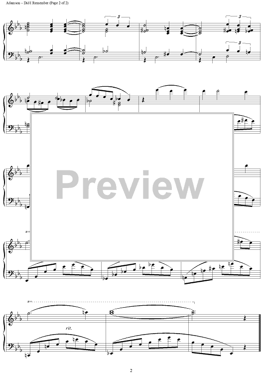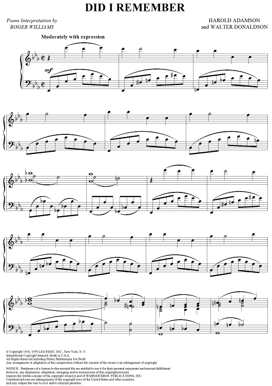 Digital Sheet Music for Did I Remember by Roger Williams, Walter Donaldson, Harold Adamson scored for Piano Solo; id:321607