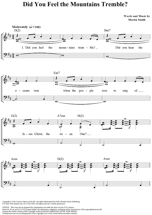 Digital Sheet Music for Did You Feel The Mountains Tremble? by Martin Smith, Delirious? scored for Piano/Vocal/Chords; id:109725