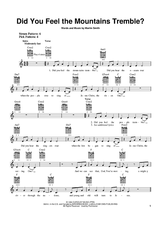 Digital Sheet Music for Did You Feel The Mountains Tremble? by Martin Smith, Delirious?, Passion Band scored for Easy Guitar; id:383335