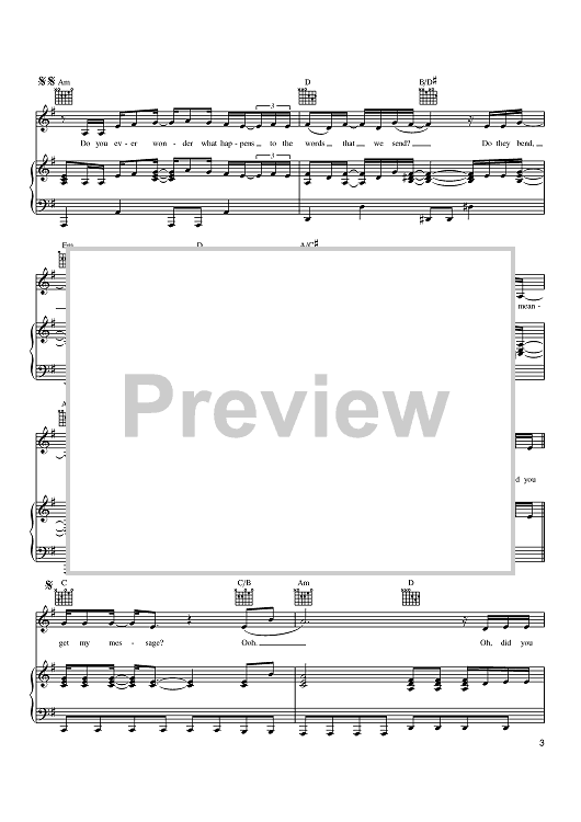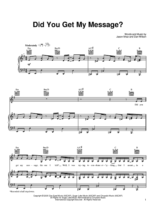 Digital Sheet Music for Did You Get My Message? by Dan Wilson, Jason Mraz scored for Piano/Vocal/Chords; id:389111