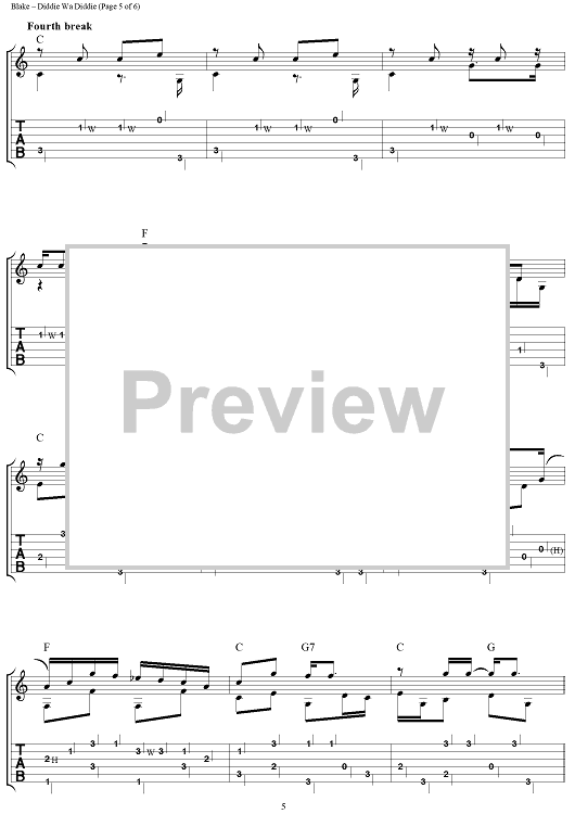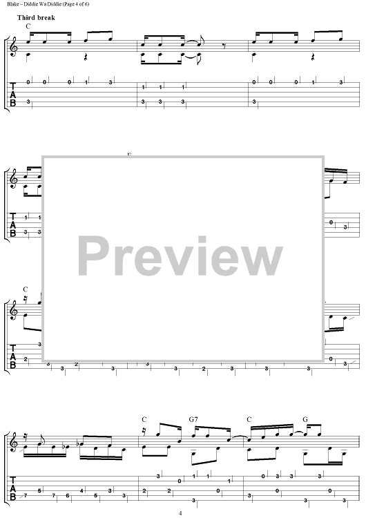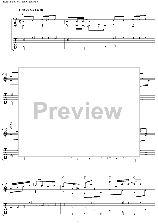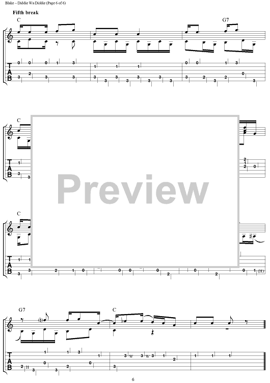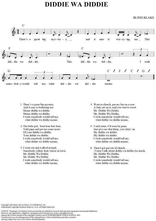 "Diddie Wa Diddie" Sheet Music by Blind Blake