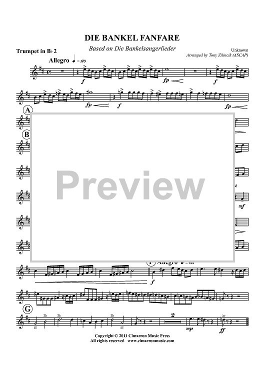 Digital Sheet Music for Die Bankel Fanfare - Trumpet 2 in Bb by Tony Zilincik, Unknown scored for Brass Quintet; id:427576