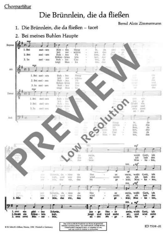 "Die Brünnlein, die da fließen - Choral Score" Sheet Music by Bernd Alois Zimmermann