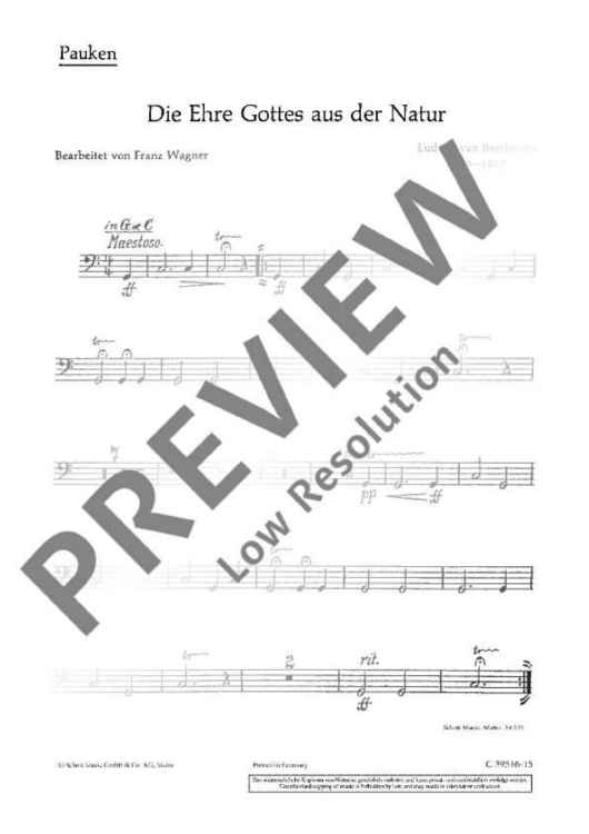 Digital Sheet Music for Die Ehre Gottes in der Natur in C major - Timpani by Ludwig van Beethoven, Franz Wagner scored for Mixed Choir (women's-/children's Choir) With Piano Or 3 Violins, Violoncello, Bass And Timpani; id:471630