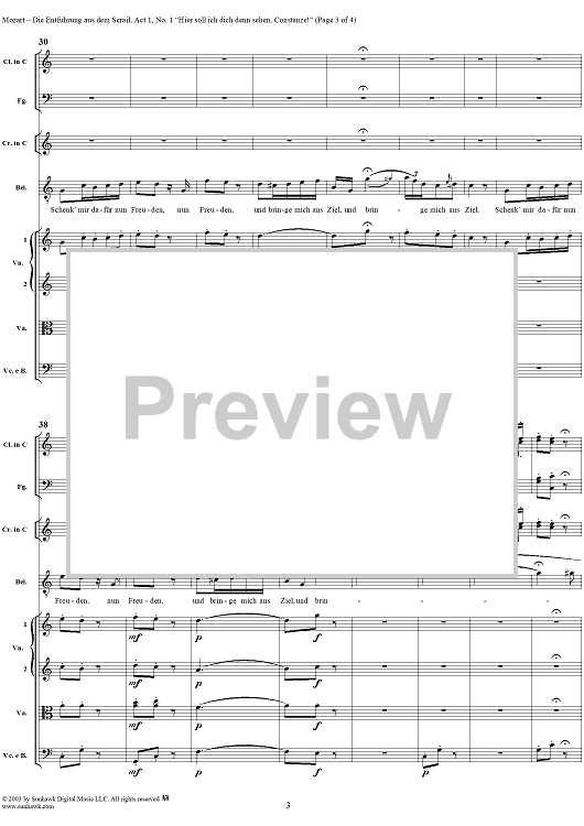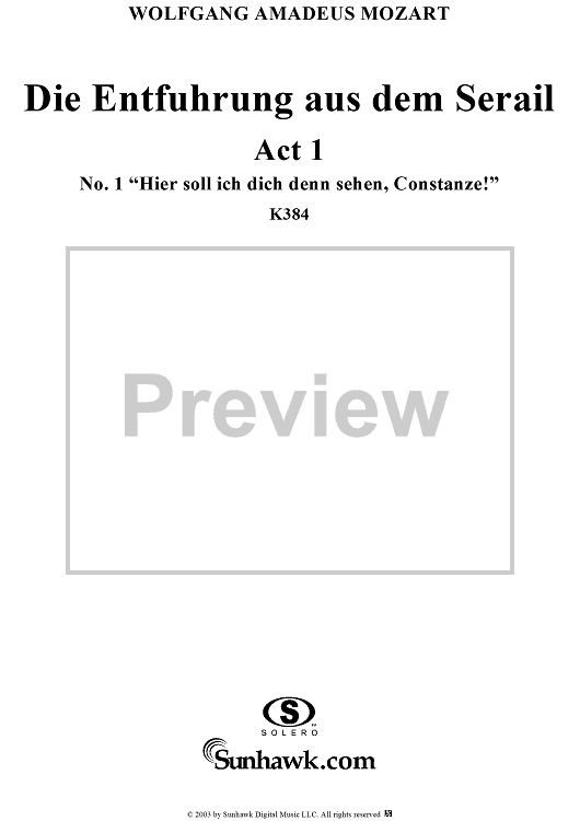 Digital Sheet Music for "Die Entführung aus dem Serail", Act 1, No. 1 "Hier soll ich dich denn sehen, Constanze!" - Full Score by Wolfgang Amadeus Mozart scored for Voice and Orchestra; id:292097