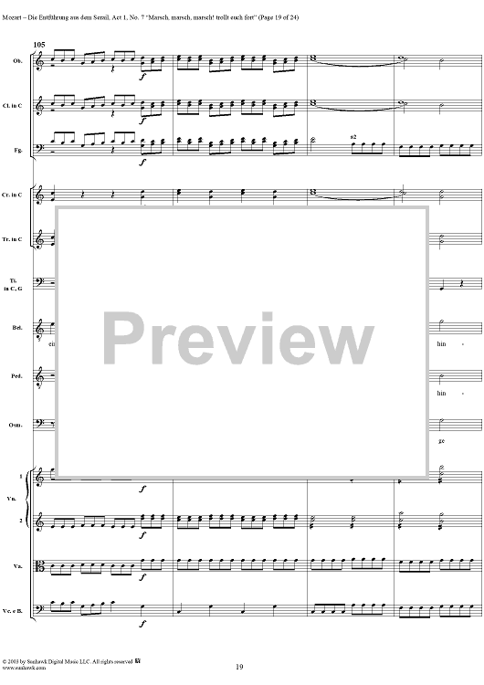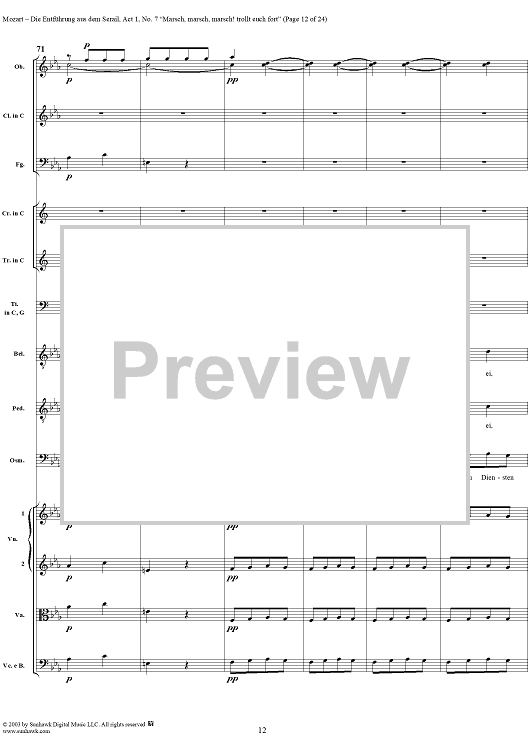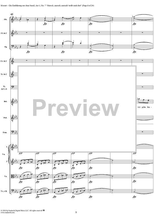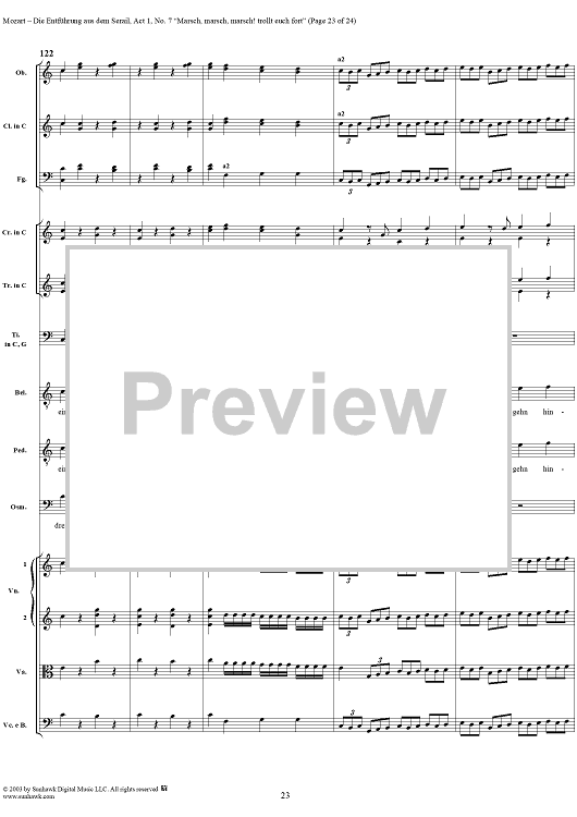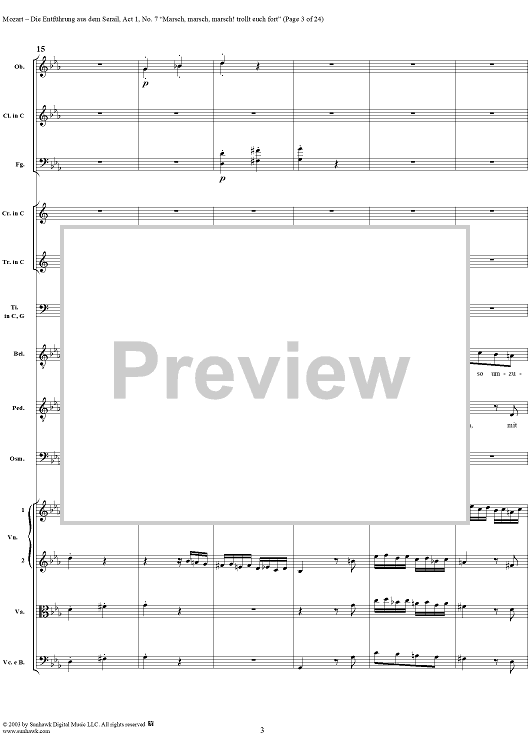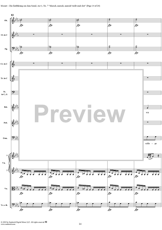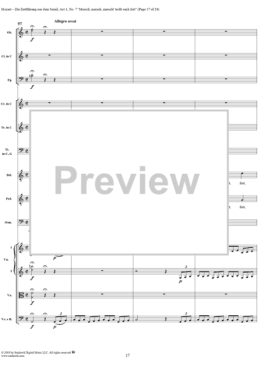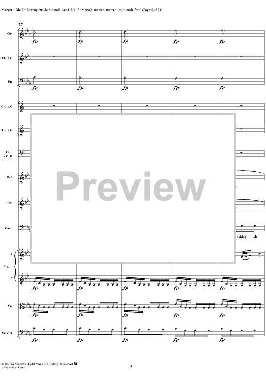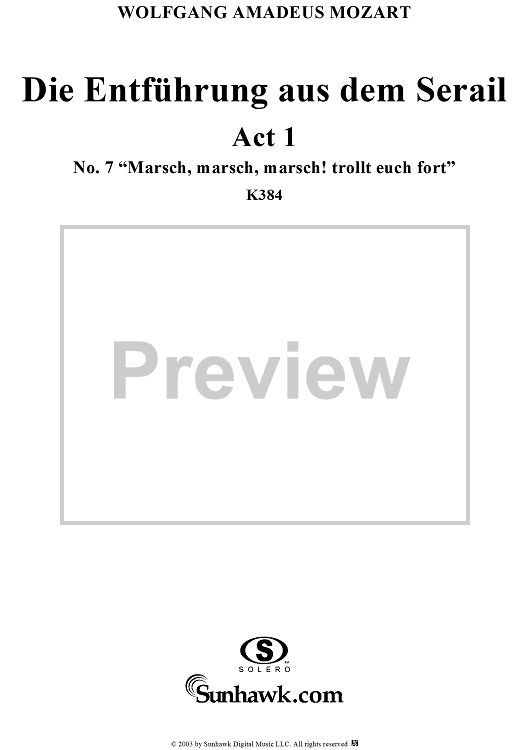 Digital Sheet Music for "Die Entführung aus dem Serail", Act 1, No. 7 "Marsch, marsch, marsch! trollt euch fort" - Full Score by Wolfgang Amadeus Mozart scored for Voice and Orchestra; id:292103