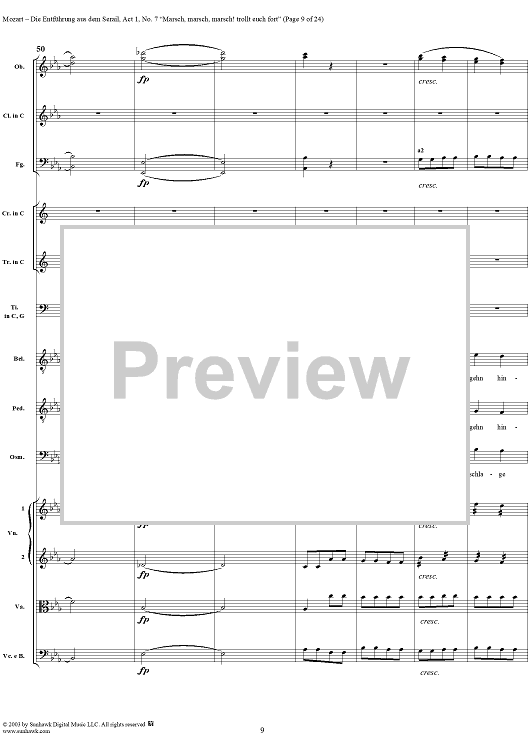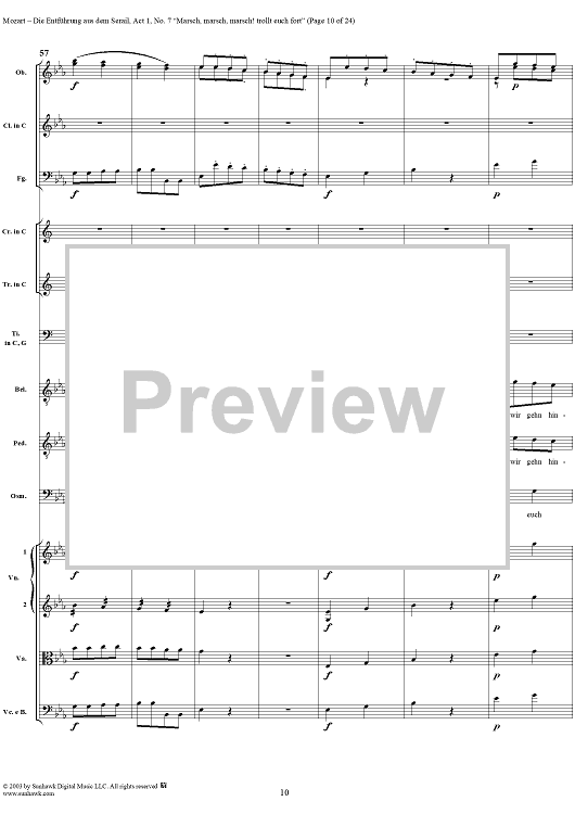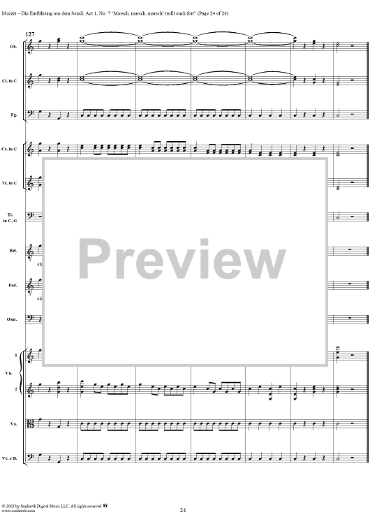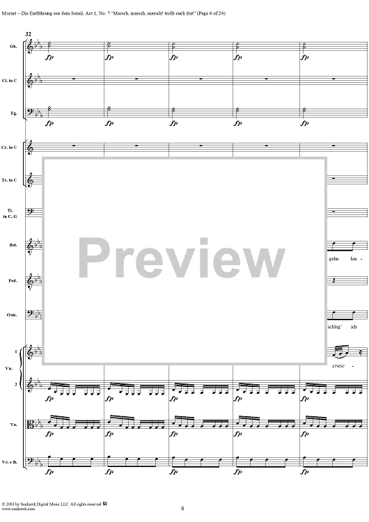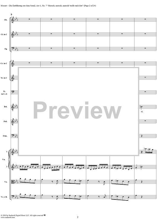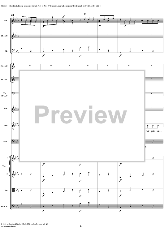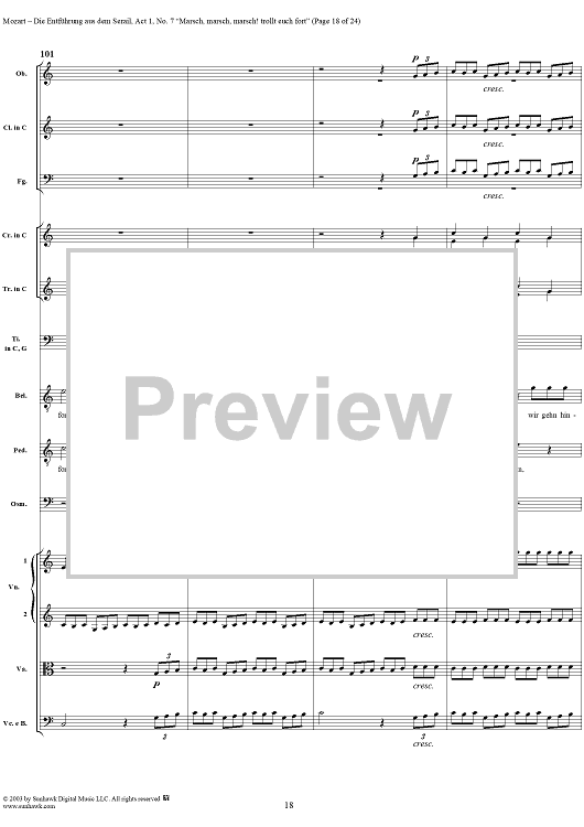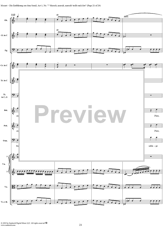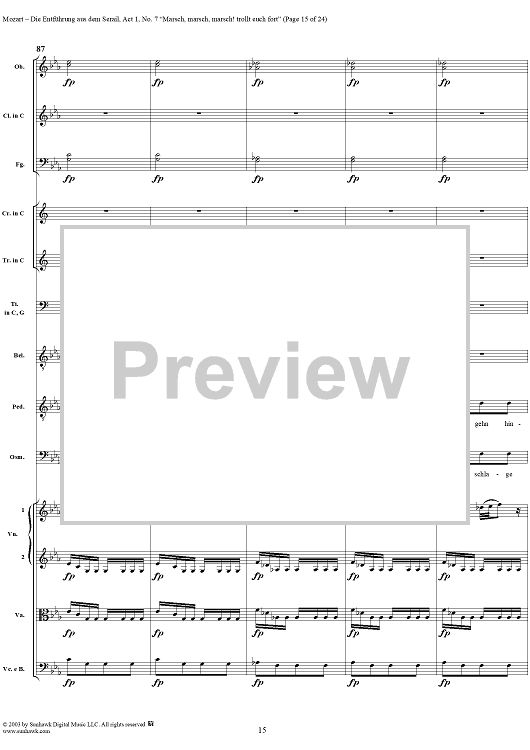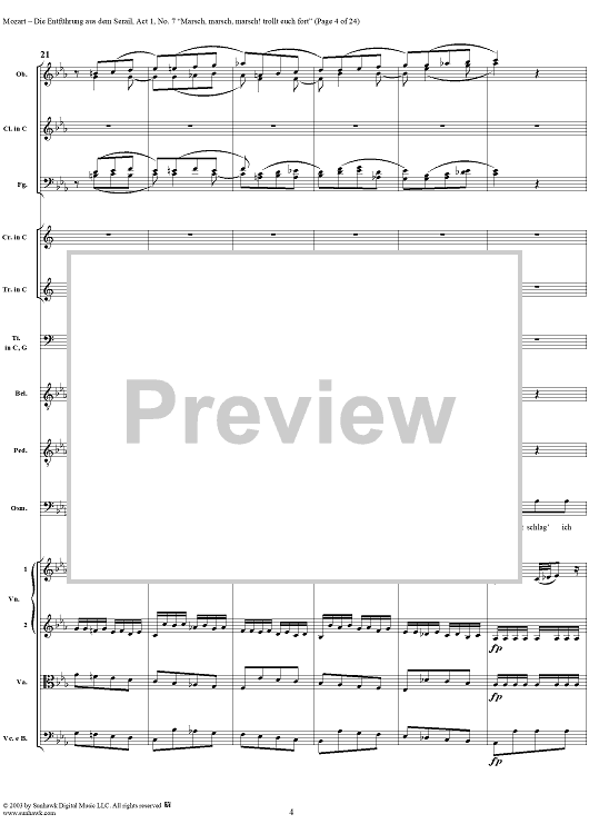 Digital Sheet Music for "Die Entführung aus dem Serail", Act 1, No. 7 "Marsch, marsch, marsch! trollt euch fort" - Full Score by Wolfgang Amadeus Mozart scored for Voice and Orchestra; id:292103