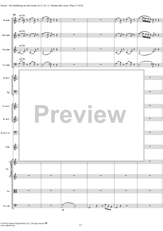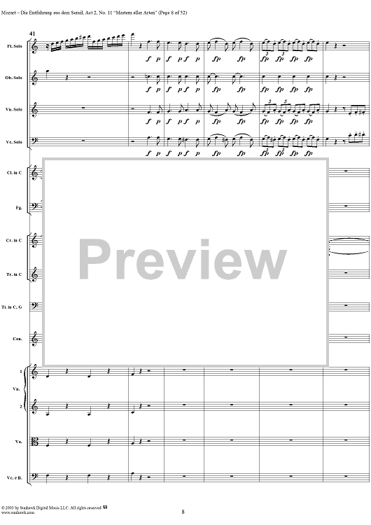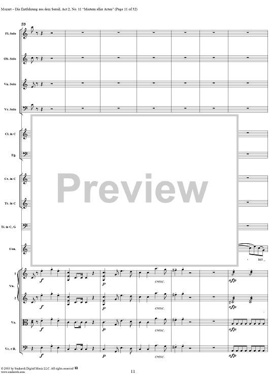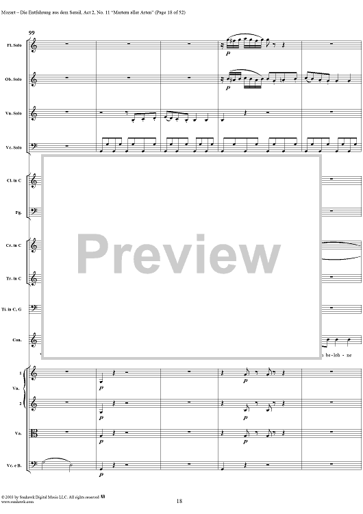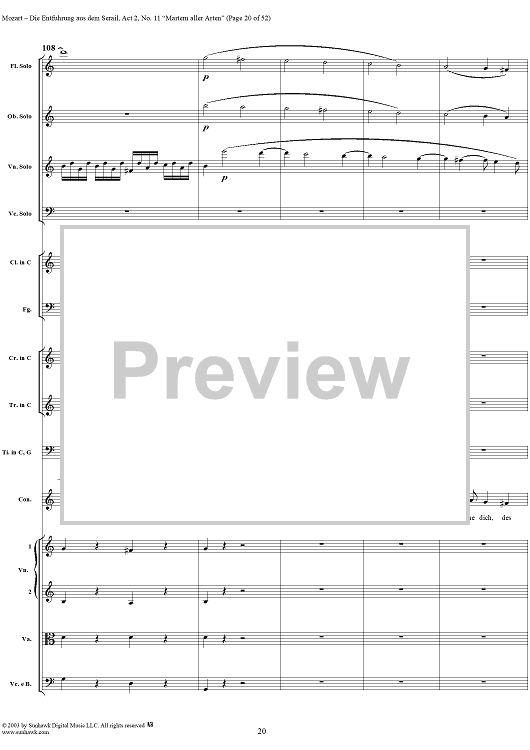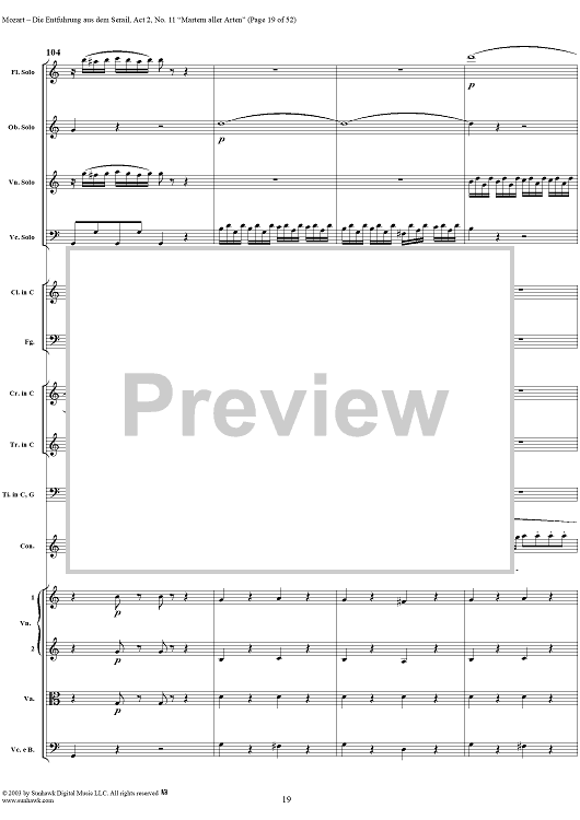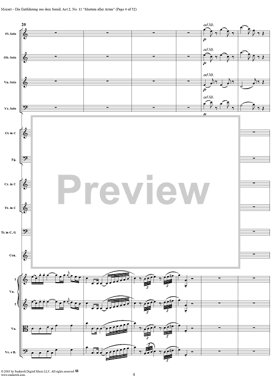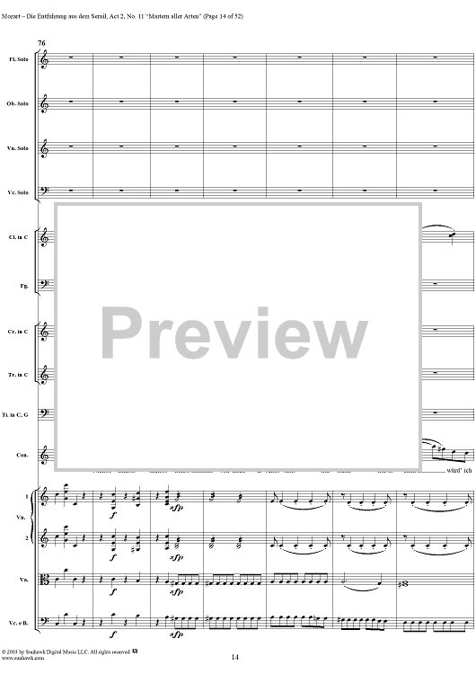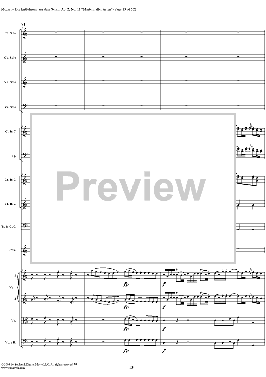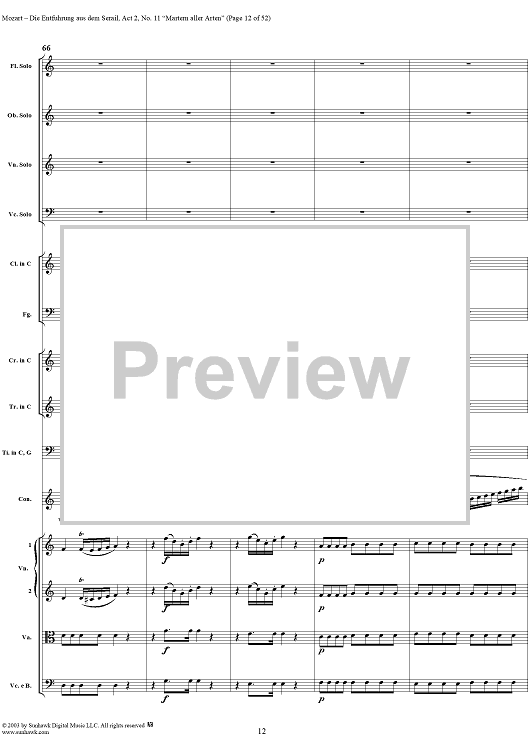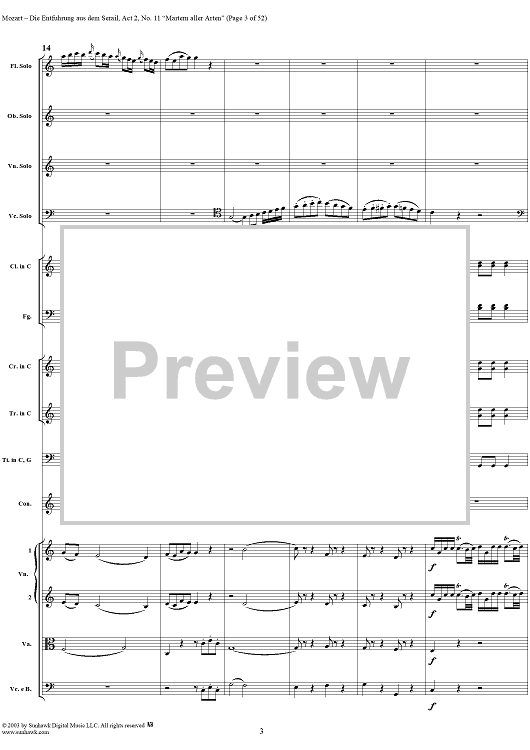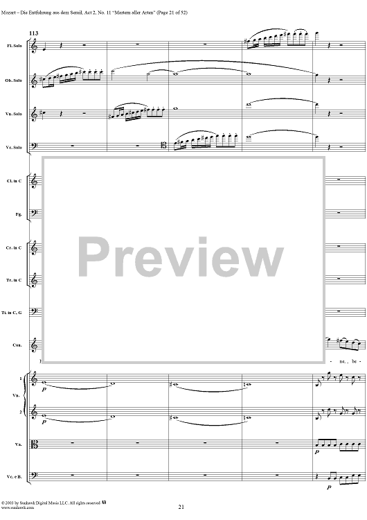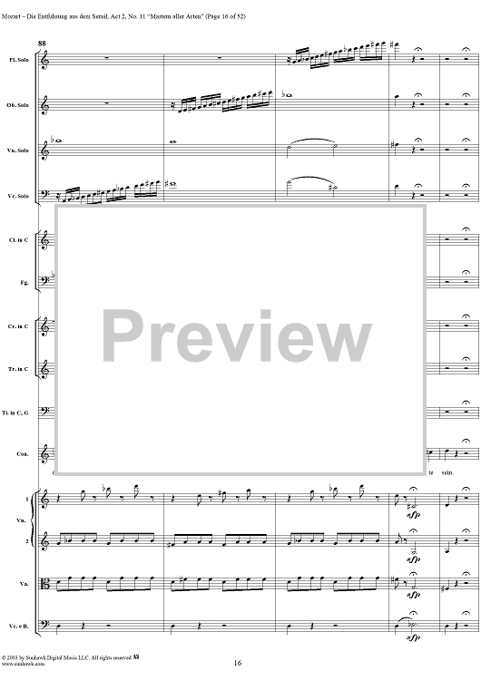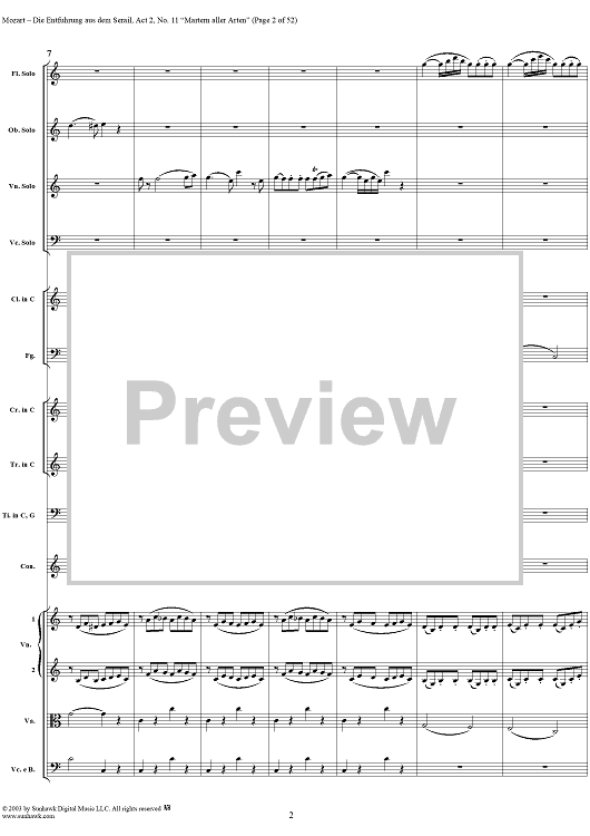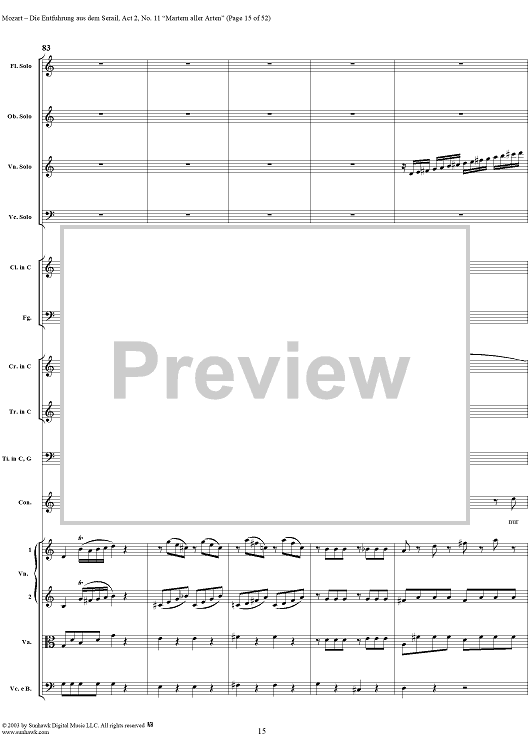 Digital Sheet Music for "Die Entführung aus dem Serail", Act 2, No. 11 "Martern aller Arten" - Full Score by Wolfgang Amadeus Mozart scored for Voice and Orchestra; id:292109