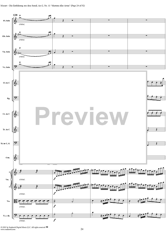 ""Die Entführung aus dem Serail", Act 2, No. 11 "Martern aller Arten" - Full Score" Sheet Music by Wolfgang Amadeus Mozart