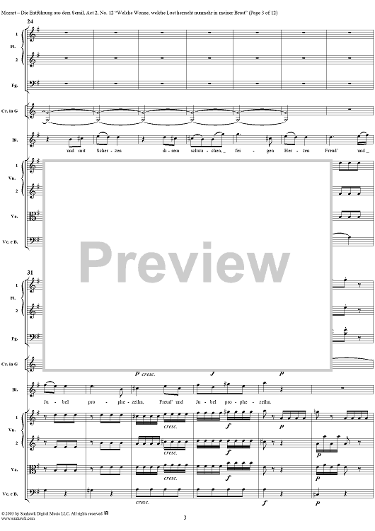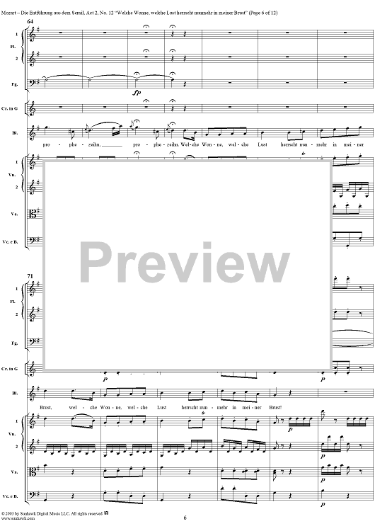 ""Die Entführung aus dem Serail", Act 2, No. 12 "Welche Wonne, welche Lust herrscht nun mehr in meiner Brust" - Full Score" Sheet Music by Wolfgang Amadeus Mozart