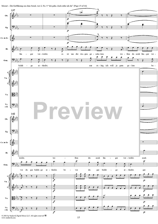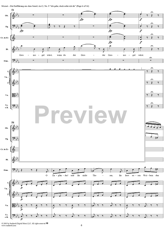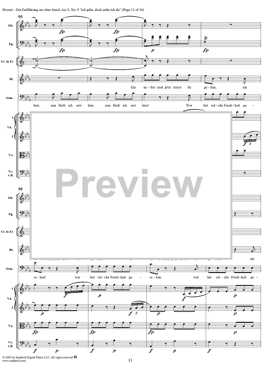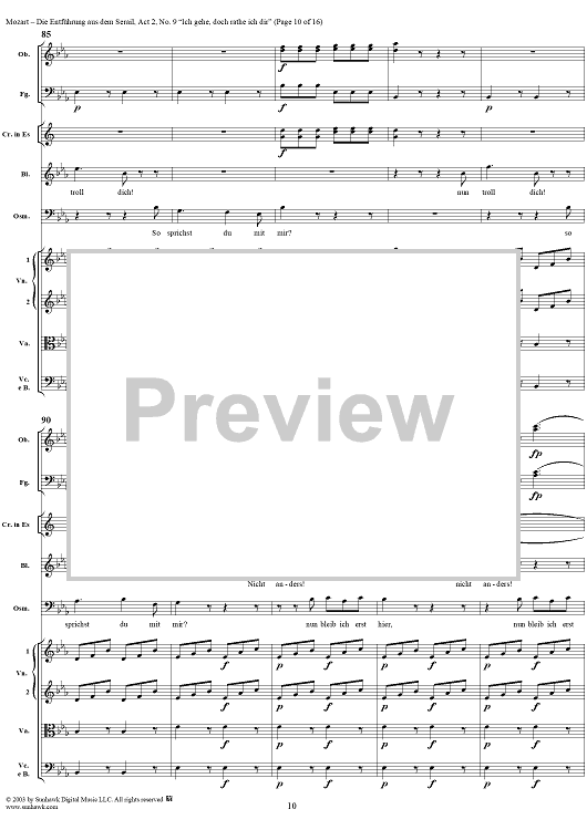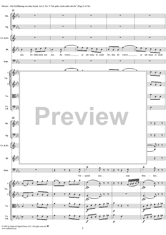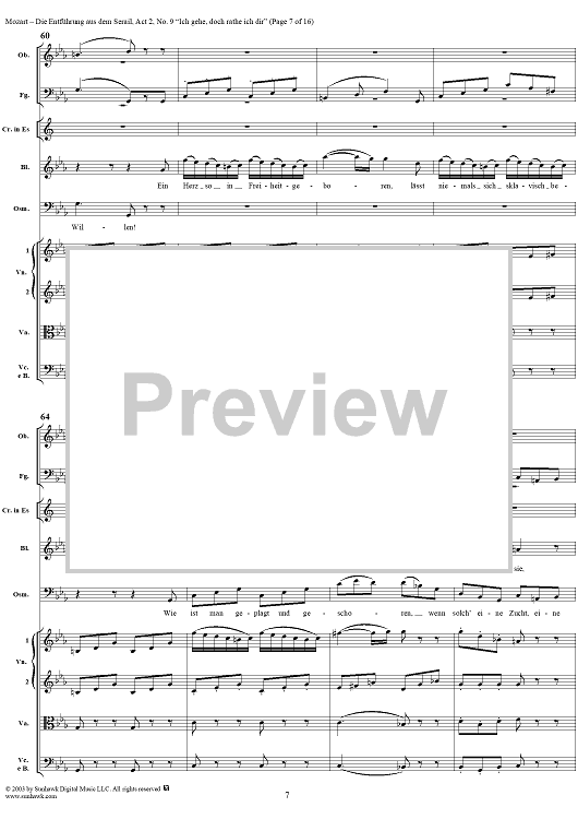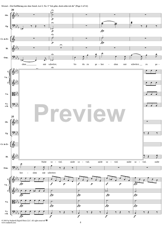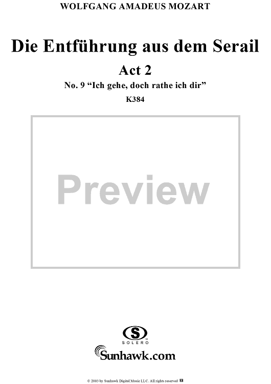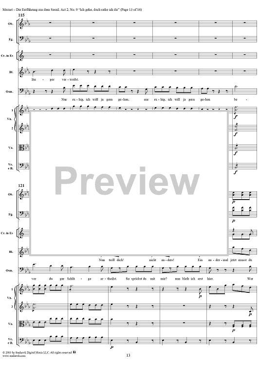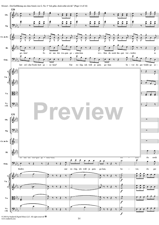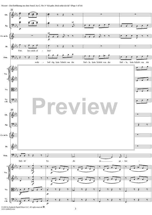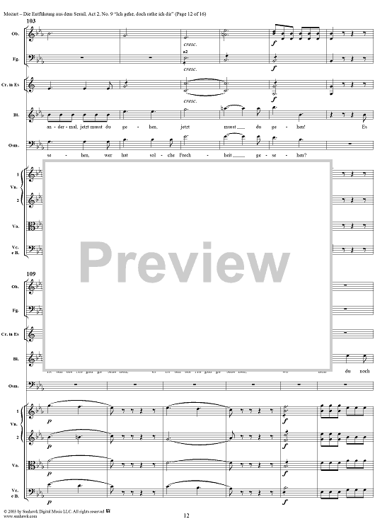 Digital Sheet Music for "Die Entführung aus dem Serail", Act 2, No. 9 "Ich gehe, doch rate ich dir" - Full Score by Wolfgang Amadeus Mozart scored for Voice and Orchestra; id:292106