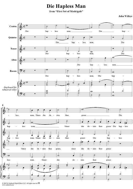 "Die Hapless Man" Sheet Music by John Wilbye